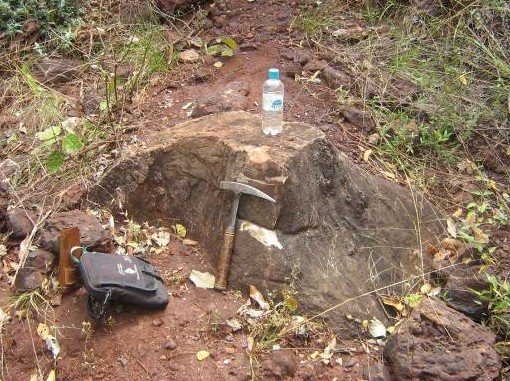 The basement in the region of Caetité, Caculé, Licínio de Almeida, among others, is composed of Archean-Paleoproterozoic gneiss, migmatites, amphibolites and granulites and for remnants of the Late Archean metavolcanosedimentary sequences grouped in the greenstone belt terrains of Licínio de Almeida, Urandi, etc. The metavolcano-sedimentary sequence of Licínio de Almeida shows banded iron formation, calcosilicate rocks (Photo 3), quatzite (Photo 4) and volcanic (Photo 5). These rocks show sporadic manganese mineralisation. Manganese ore layers varying between 30 cm and 1.5 m occur intercalated in a dark red soil which can reach up to 15 m. The manganese ore is resulted from the supergenic enrichment from the rocks of the metavolcano-sedimentary sequence. A list of wells from Prospex is attached below. The regional geological context is shown, in a simplified manner.
